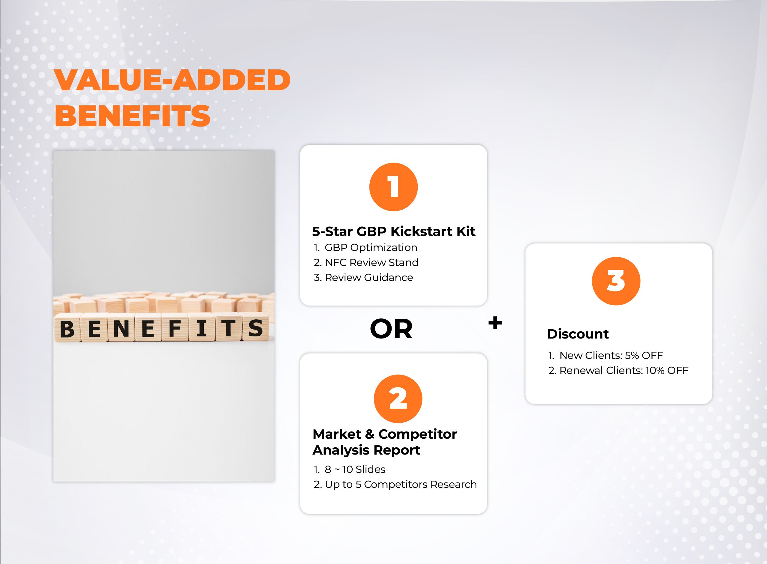 - Each eligible sign-up may choose ONE free value-added: 5 Star Kickstart Kit OR Market & Competitor Analysis Report.